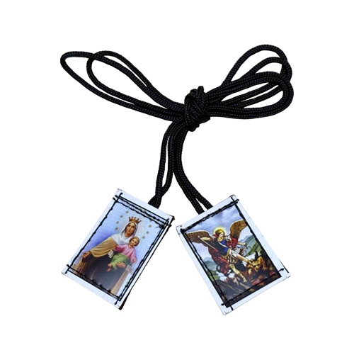 SC 114-Big synthetic Saint Michael normal black twine scapular (3 cm x 2.5 cm)