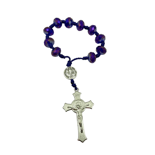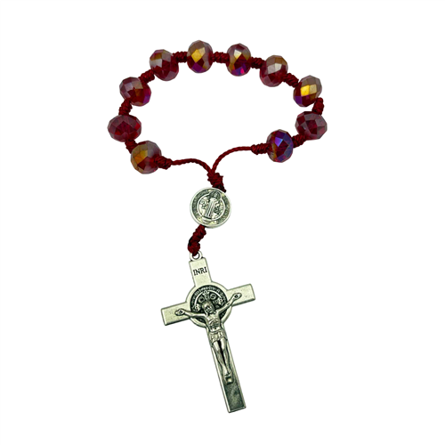 RC 045-12 mm crystal 10 bead rosary with Benediction medal